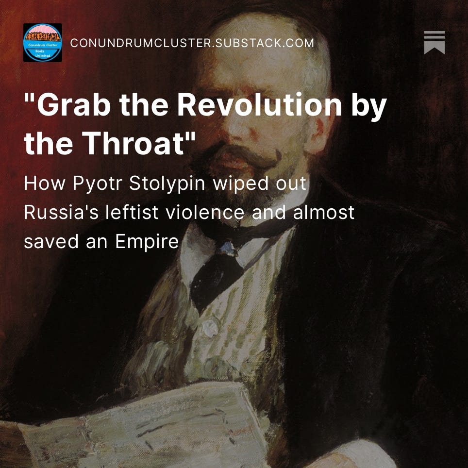 Russian Interior Minister Pyotr Stolypin’s experience in ending the huge wave of political violence that followed the 1905 Revolution could offer some insight on how to solve this problem. Worth looking into.