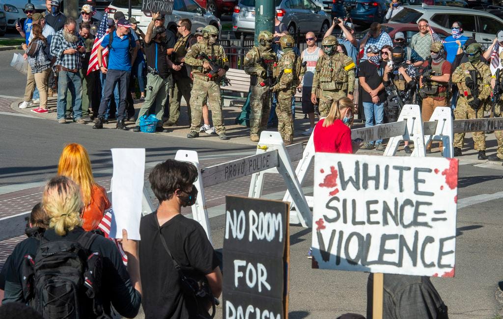 Something’s got to give here, guys. This is ridiculous. These people were operating an armed roadblock in a nice sleepy town in a Deep Red state. Some of them travelled from neighboring cities to do this. None of this behavior should be acceptable, and yet it very clearly is today.